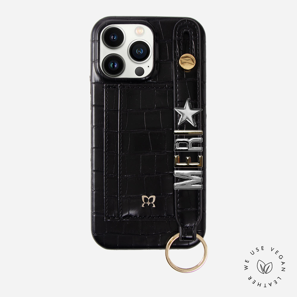 iPhone Case with Hand Strap Card Holder Phone 15 Pro Max in Black